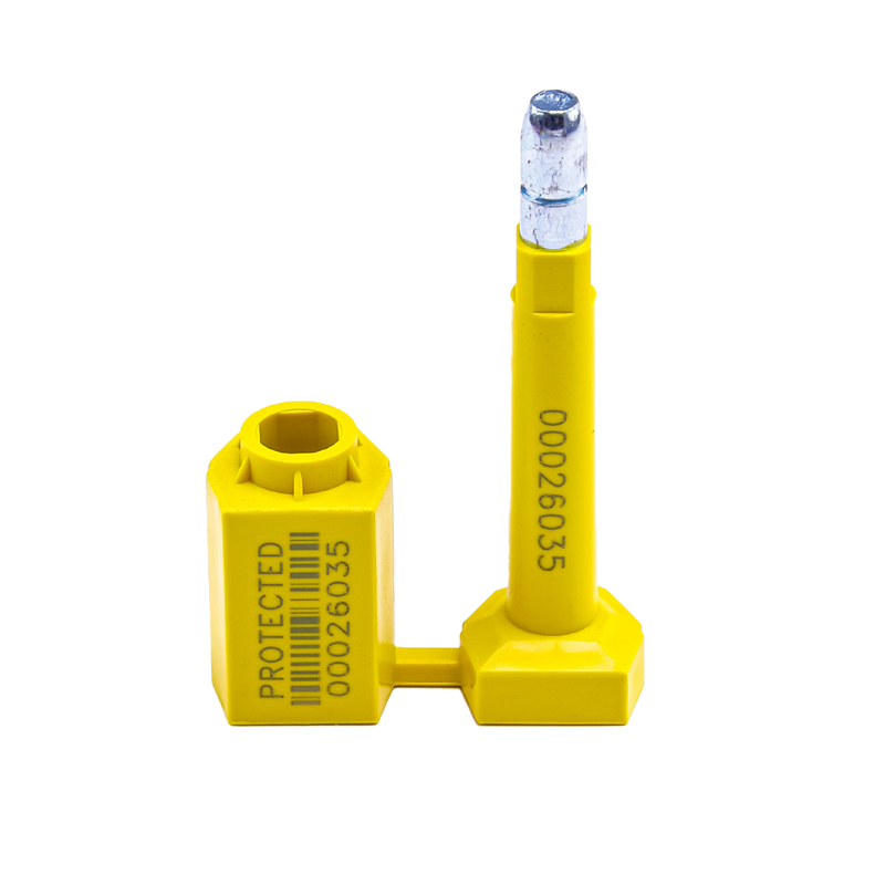This bolt seal is a high security seal designed to safeguard high value cargo. The seal features a larger printing surface to accomodate variable numbering and printing requests. This bolt seal meets the technical requirements of C-TPAT and is ISO PAS 17712 certified as a high security bolt seal. Please discuss other options with us.